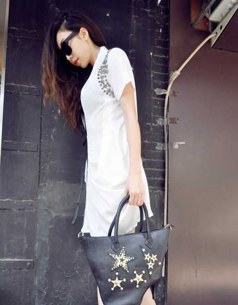 有木有摩登的感觉,一九分往一侧拨的刘海,烫卷的头发,给人一种酷帅感,搭上墨镜,气质超捧。