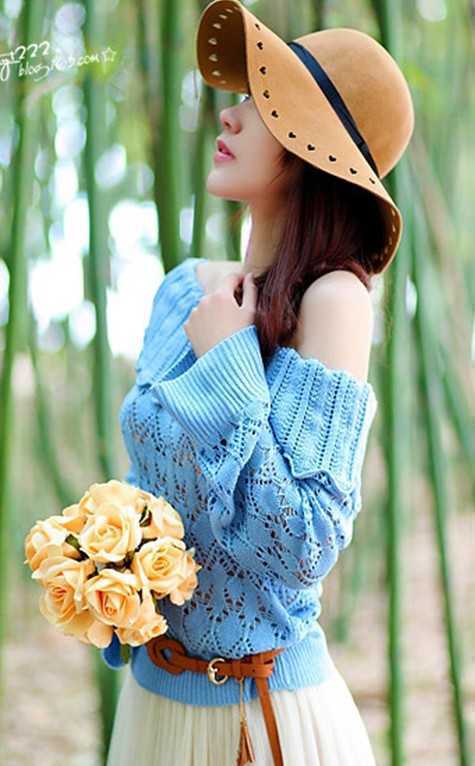 春天的优雅甜美范,充满着田园气息,搭配宽檐帽子,露肩毛衣,洁白的雪纺裙,真心美,精致的腰带也是一大亮点哦,喜欢这种自然优雅的搭配美,你呢?