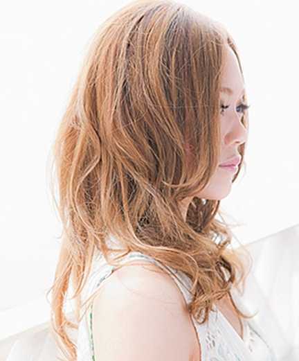 一头浅黄发色,倍添时尚感,中分刘海,两颊内扣发尾,修脸最佳!经过烫卷的发丝,更是好看!