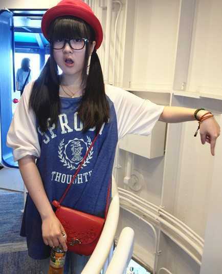 甜美风格的一款扎发,分成两边的扎发效果,超可爱的,前面是剪齐的刘海,展现出甜美范,戴上一副眼镜,超萌!