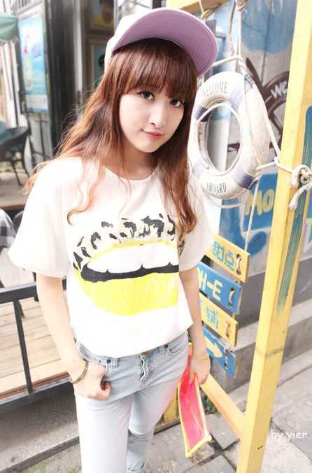 发型分析:剪齐的刘海,展现甜美风,经过烫染的玉米烫卷发,潮流时尚,夏季流行发型之一,穿上短袖+牛仔裤,清新的夏日风尽显!还十分显淑女的发型哦!