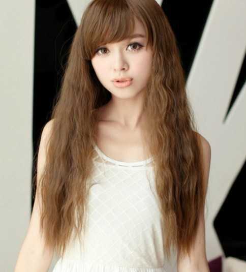 亚麻棕的发色,这款女生烟花烫长发,长长的头发搭在肩上,感觉超美的,而且还十分修饰脸型哟!有点斜的刘海,蓬松感,打造精致小脸,初秋时节最适合这样的一款发型。