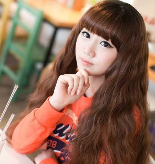 前面修齐的刘海,带给人一种甜美感,长而蓬松的发丝散落,很修饰脸型,瘦脸又减龄哦!甜美女生大爱!