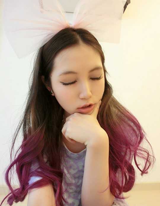 渐变梦幻般的发色,引领了2013最时尚最潮流的趋势,完美的一款纹理烫发型不仅透露出女生知性的一面,更多展现的是可爱甜美气息,大大的蝴蝶头饰夸张中带出个性张扬感!