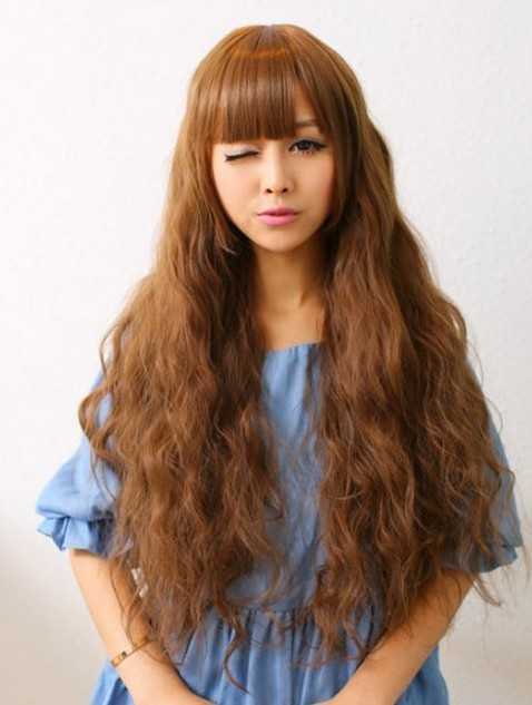 超可爱时尚的一款烫发发型,抢眼的棕黄染发,瞬间美爆了小编的眼球,厚感齐刘海显得有点小甜美,再看那两侧弧度的烫发完美打造出一张精致的小脸,搭配时尚的蝴蝶结发箍,喜欢的赶紧一试!