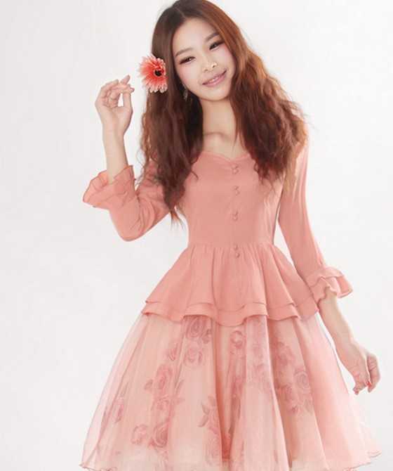 好唯美的烟花烫发型,两侧烫发修剪程度刚好,黄棕色染发打下了时尚的基础,中分的刘海也正好修颜女生的脸部,花朵的修饰更为甜美,再以一身粉红连衣裙超迷人。