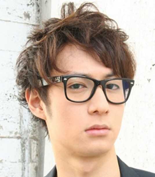 这款烟花烫发型,在顶部中打造蓬松凌乱感觉,尽显男生个性有型的魅力,轻薄感的刘海内扣的弧度露出精致的五官,再搭配一副眼镜,又是体现文艺青年气息哦!