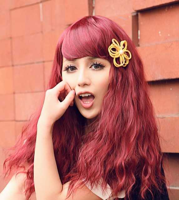 在秋冬里非常夺人眼球的玉米烫发型,以最抢眼的酒红染发来为时尚作最好的铺垫,蓬松凌乱美感的烫发看起来非常有范!微微斜起的刘海,还很显女生大而有神的眼睛哦!