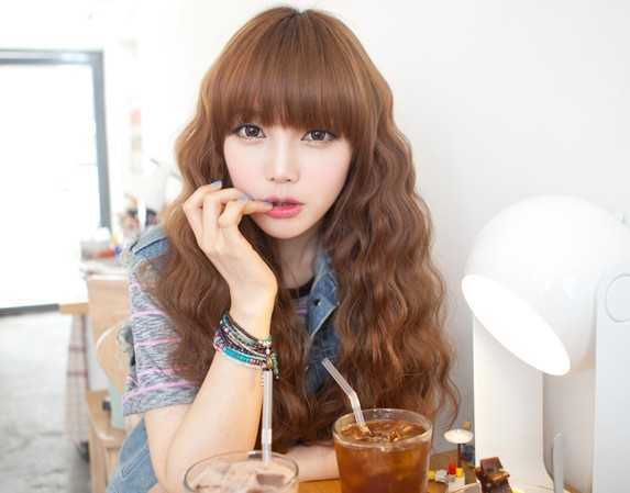 很美的玉米烫发型,让这个女生得到最可爱时尚气质,碎散的刘海在蓬松的玉米烫下显得很清爽,两侧贴服的头发还能修颜呢,使精巧的小脸得到很好的修饰,棕黄色染发也让秋冬里变得时尚起来。
