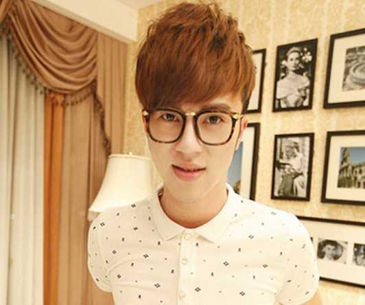 这款男生非主流发型,顶部蓬松耸起的定位烫,搭配豹纹眼镜框,显得个性又搞怪,浅浅的深棕发色,没有过于张扬感,却呈现出一种潮男迷人的魅力有没有?