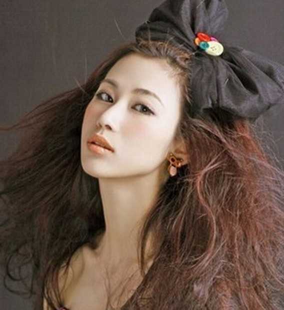 看起来比较新潮洋气的一款烟花烫发型,有着蓬松凌乱的设计效果,给人十足霸气自信感,无刘海搭配着大蝴蝶结发饰,个性不失小甜美气息哦!