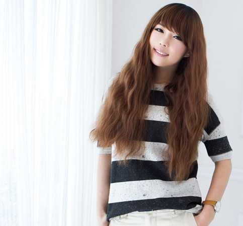 可爱甜美的小女生,在搭上一款长烟花烫发后,瞬间变得时尚洋气起来,浅棕色染发好看又百搭,一个微斜的刘海修颜还起到减龄效果哦!