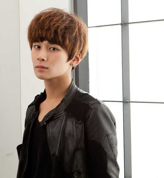 同样是一款蓬松的烟花烫发型,烫卷的发束和不规则的刘海下,那张清秀的脸蛋显得十分完美效果,浅浅的棕黄发色,时尚帅气潮男气息。