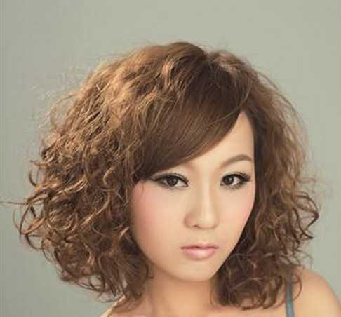 这款女生短发烟花烫,从发际线的位置开始进行烫发处理,再搭配上斜分的直发刘海,少许的个性张扬感中透出几分温婉小女人气息。
