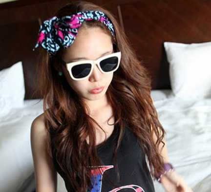 充满校清新的长卷烫发,将前面的刘海用发带弄起,清新逼人,卷烫的头发分别搭在肩上,瞬间修颜,佩戴的墨镜,更是展现出酷酷味道。2014年韩范十足,最流行哦!