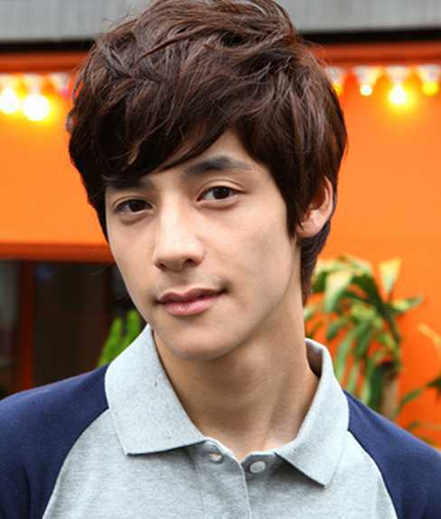 校草气息的蓬松纹理烫发型,自然中更具男士有型魅力,没有分线的斜刘海巧妙修饰了长方脸型,看起来微卷的头发结合板栗色染发,阳光活力又能尽显。