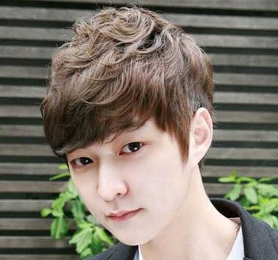 极具韩范儿气质的卷发纹理烫发型,厚重但有层次的刘海修剪,又有着可爱小男生感觉,深色的亚麻染发,显白皙肌肤,又时尚帅气。