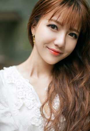 一头超的棕黄长烫发,全部往肩上侧披的效果,显温柔女性外,更是彰显出优雅味道,碎薄的齐刘海搭配红唇美妆,清新减龄十足。