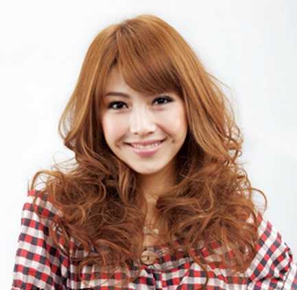 超蓬松的陶瓷烫发型图,中长的头发这样打造后,立马变得气质又迷人,斜分的刘海设计,再挑染出棕黄发色,时尚甜美十足。