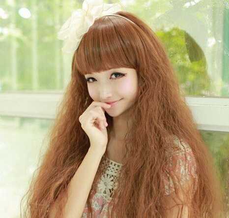 轻盈的烟花烫发,个性中却给人十分甜美的感觉,厚感的齐刘海搭配可爱发饰,又能演绎出浪漫淑女风。
