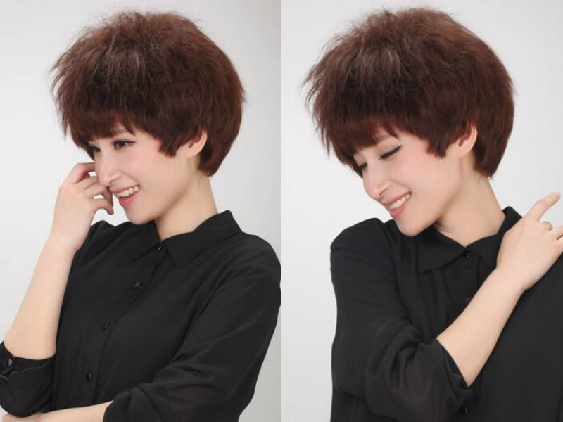 及耳的锡纸烫短发帅气、有型,非常适合酷酷的女生,蓬松的发顶动感十足,可在视觉上拉长你的脸型,让你更显瘦,碎剪的齐刘海设计感满分,给人非常清爽与爽朗大方的感觉。