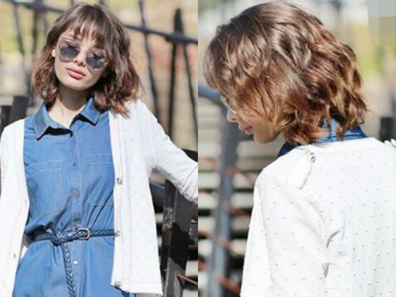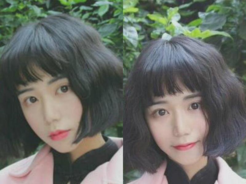 黑色是经典发色,这款带着八十年代风格的黑色水波纹短烫发不仅清新优雅,而且不失妹子的甜美可爱,两边水波纹烫的短发轻轻包裹住脸蛋,在视觉上可以起到瘦脸的作用,加上一款露眉刘海的搭配,更突显妹子灵动的双眼,让人不自觉地被吸引。