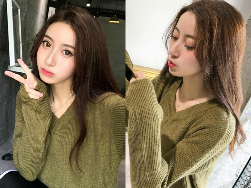 轻柔的刘海垂在额前使额头若隐若现,看起来清爽又透气,披肩的长发经过空气灵感烫发处理充满空气感,发丝间丰盈灵动的感觉是那么的自然,垂落于脸颊两侧的头发轻轻蓬起,衬托得妹子的脸蛋愈发的小巧了。