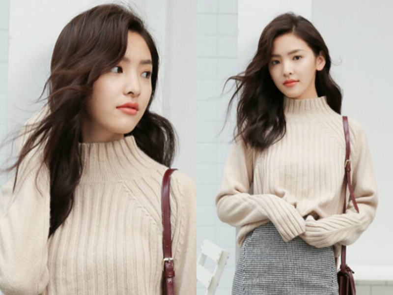 把长发稍微染烫,垂落在肩前的发尾隐约带着弯曲的线条感,不经意间就拉长了脸型,轻薄的空气刘海悬挂于额前,清爽透气之余更突出妹子精致的五官,再搭配一件娃娃领衬衫,一张娇俏的脸蛋就更显温柔动人。