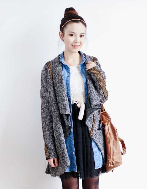 一个简单的丸子,微黄的发色,给人一种清纯的感觉,头上再搭一个发饰,再来一个浅浅的微笑,显得更甜美哦。