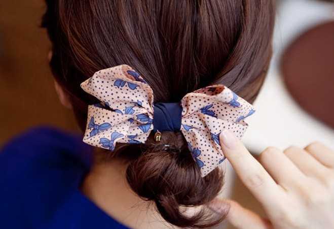 这种低扎法的丸子头真的很甜美哦!做法也很简单,只要把前面的刘海往后梳,然后就用一个蝴蝶发圈扎起来就可以!看看!好甜美的哦!
