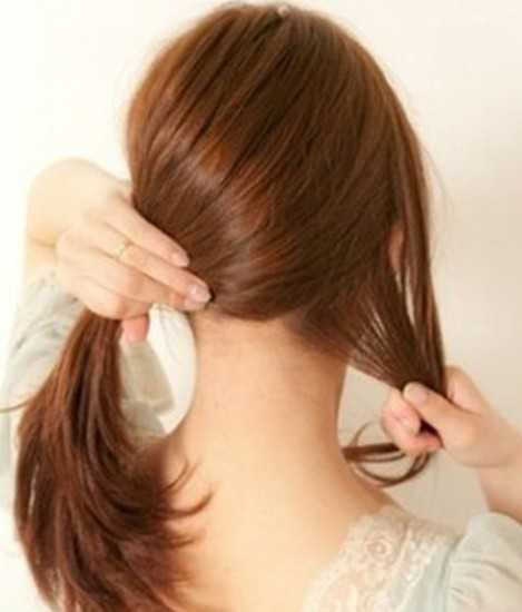 步骤一:要将头发分区,大部分的头发就扎花苞头,右边留出一束作为修饰备用。