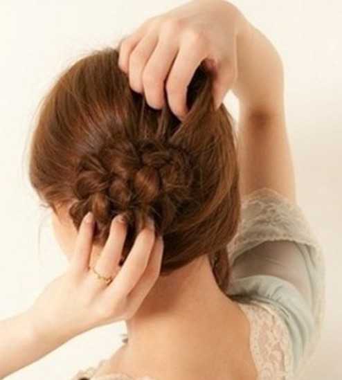 步骤五:固定好小花苞之后,用手拉松头顶的头发,这样可以营造蓬松感。