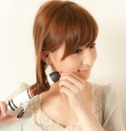 步骤六:将留出来的头发,用卷发棒卷起来,这样可以增加浪漫甜美效果。