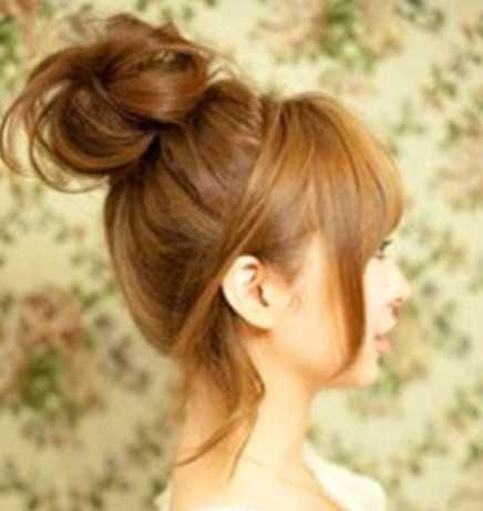 从侧面看上去,这款丸子头一样美丽动人,夏季最适合的韩式丸子头,有点蓬松感,更显的时尚,前面是碎刘海打造,留出来的两颊发丝,更添妩媚感,很好看的一款丸子头扎发,只需要五步就OK!一起进来学习下!