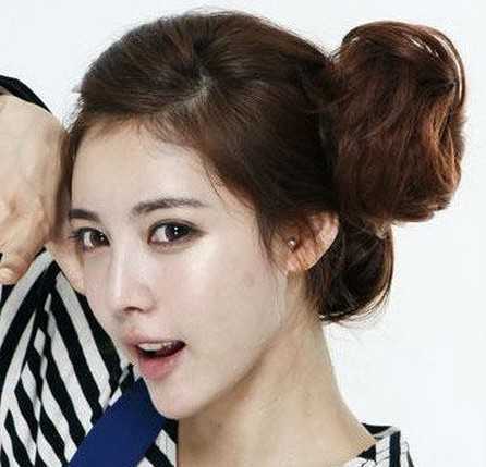 顶着这样的一款无刘海丸子头,炎热的夏季一定是最显清凉的哦!无刘海的打造,有木有让你感觉到清新范十足呢?嘻嘻...超喜欢这样的丸子头发型。