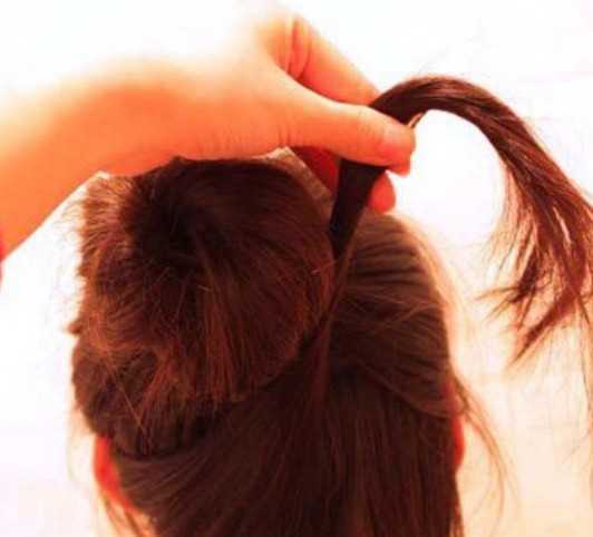 4、另一部分的头发也按照同样的方法缠绕在丸子头上即可。