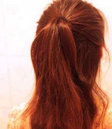 1、第一步把头发梳理整体后,运用公主式半扎发,扎出一个马尾。