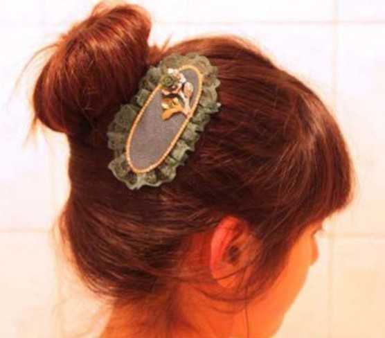 5、最后一步非常简单,只需要用上黑色小夹子把头发加以固定,散乱的发丝还可以喷上喷雾定型。