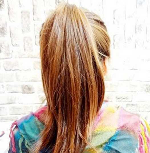 4、这时把头发马尾部分固定在尾端处位置。