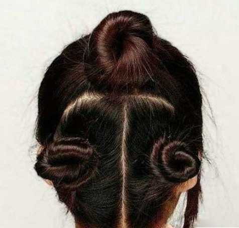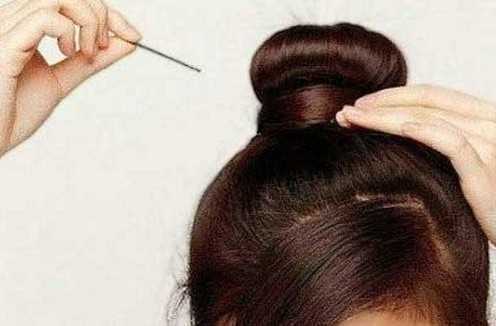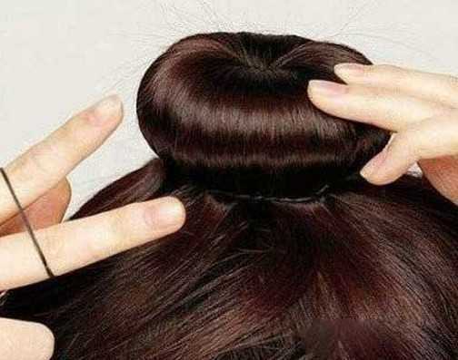 5、而另一侧的头发也同样缠绕在丸子头上。如图所示!