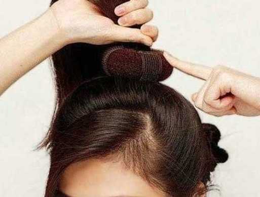 3、利用海绵圈将发束盘成一个丸子头形状,注意使用橡皮筋固定好发尾哦!
