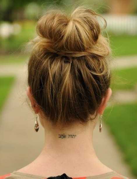 蓬松高扎的欧美丸子头发型,松散凌乱的发丝看上去很是甜美感觉,非常适合清纯的少女们,还可以在丸子头上配带一个小小的发饰尽情展现女孩甜美个性哦!