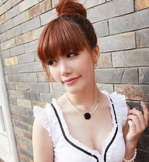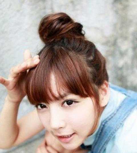 刘海整齐的韩国丸子头发型,看着小小发包盘发,大方不失气质优雅女性魅力,整天造型那可是绝对让人喜爱不已呀!