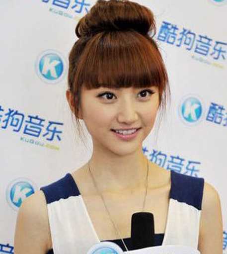 蓬松造型的丸子头发髻,看起来清纯不失小甜美的气息,搭配厚感的齐刘海,也是可爱迷人倍增呀!
