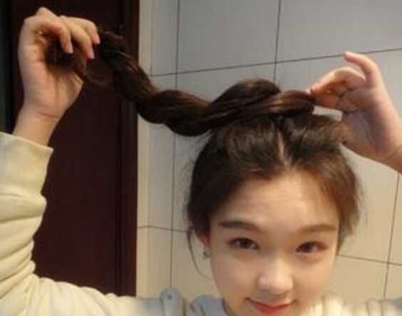 步骤七:将头发盘成一个花苞形状,发尾收到头发里。