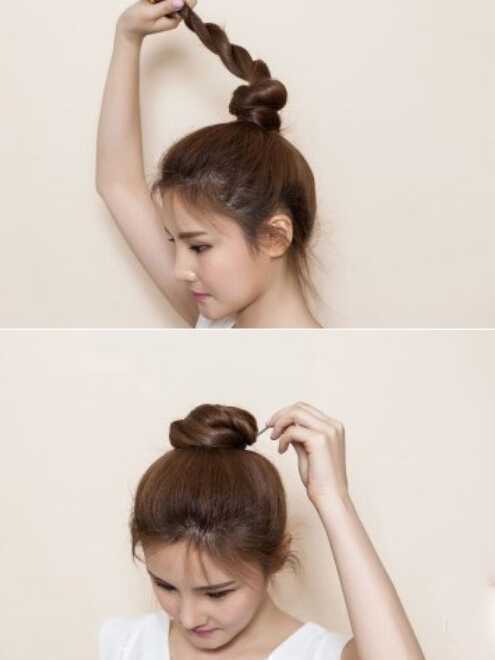 step10:一直扭转最终形成丸子头,用发夹固定好。
