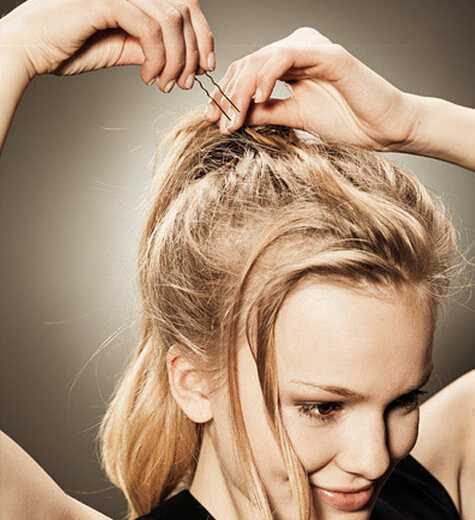 step4:把马尾扭转后将刘海固定在脑后。