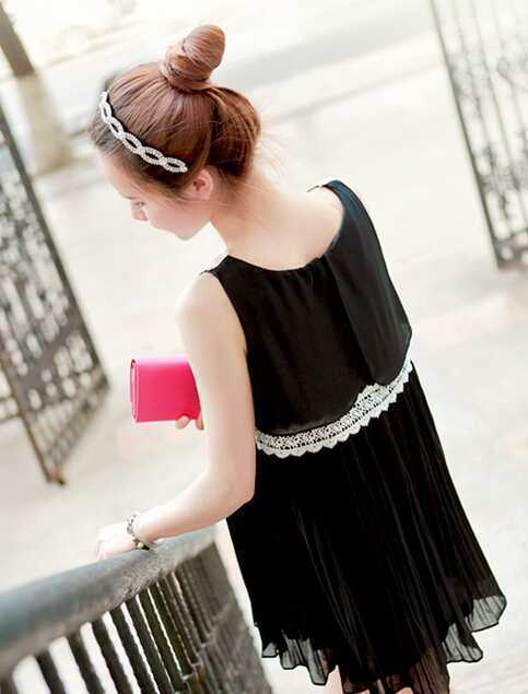 3、清新甜美丸子头:清新甜美的丸子头,发丝有点蓬松,头发往后扎起丸子头,显得特别清爽,搭上发箍很甜美,有种小女生的感觉。