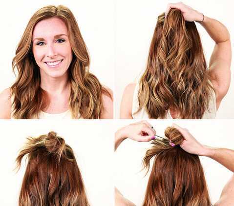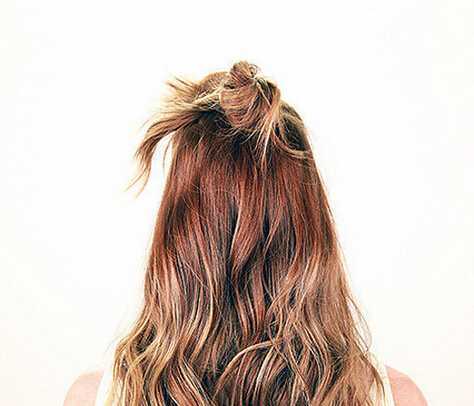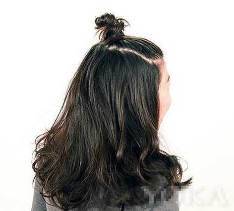 第1款、看起来很简单,头顶的头发简单的扎一下,不用太在意发丝,让它散出来也没关系,这样看起来更自然。