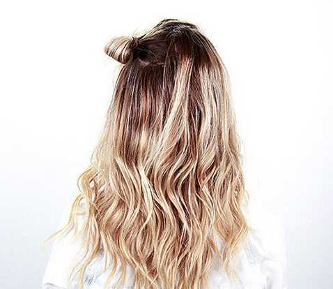 第5款、把头顶头发扎成紧实半扎丸子,搭配烫卷发,真的很好看,有点俏皮,减龄效果棒棒哒。